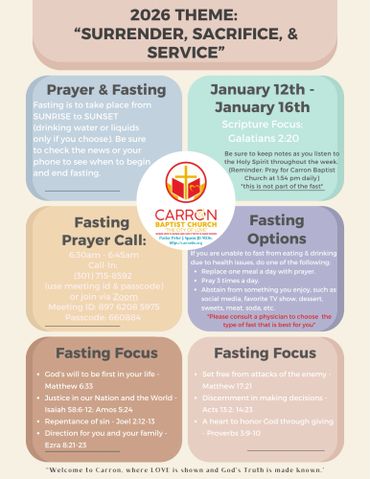 We have Bible Study every Tuesday night at 7:00 pm. You can join us for Bible Study online; we broadcast on our Facebook page (@Carronbaptistchurchdc)